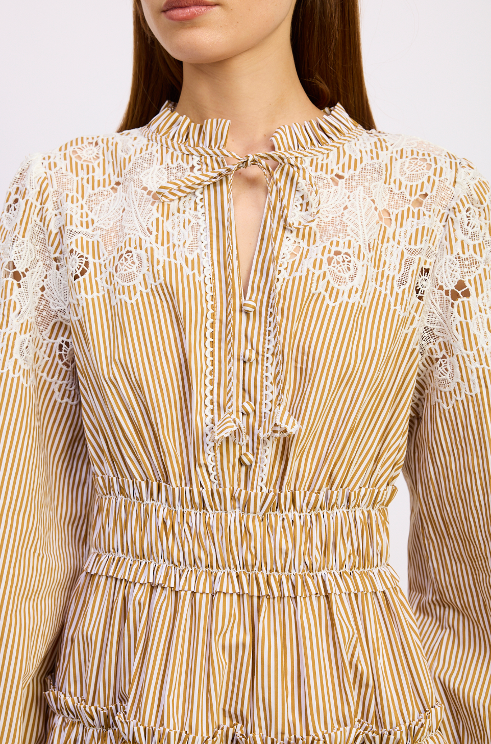 • Placed Floral Embroidered Yoke Ruffled Mini Dress