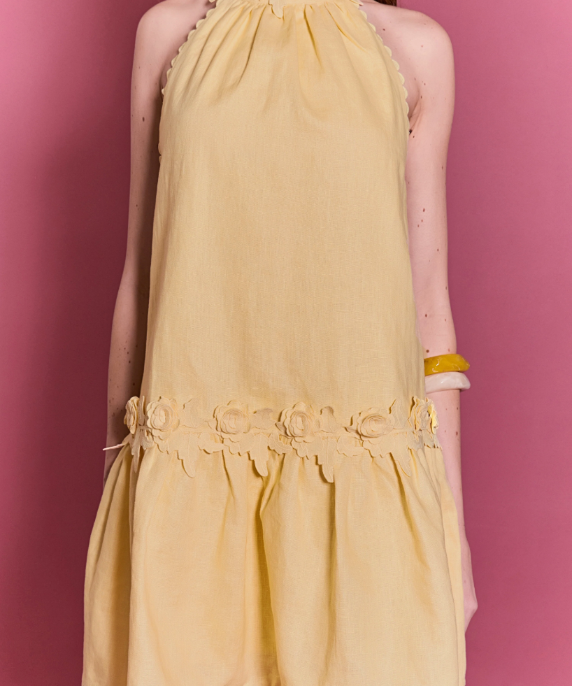 Scalloped Halter Linen Mini Dress