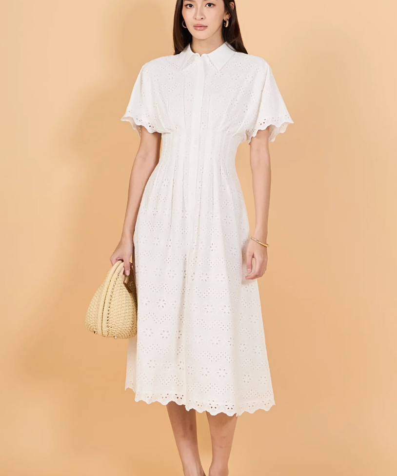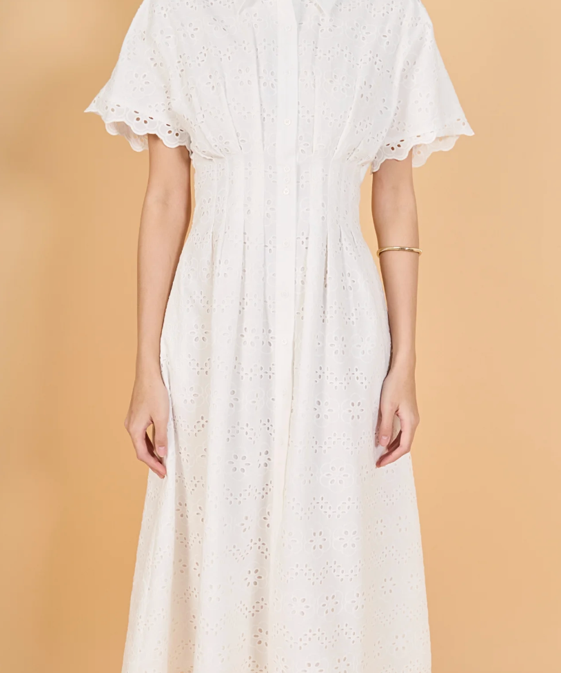 Eyelet Cinched Waist Midi Dress