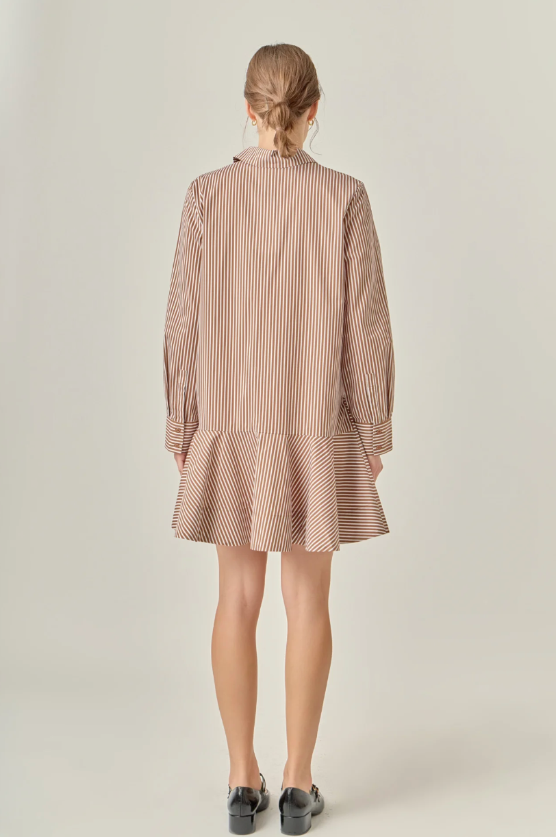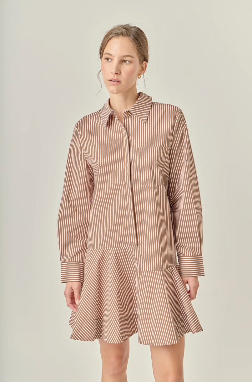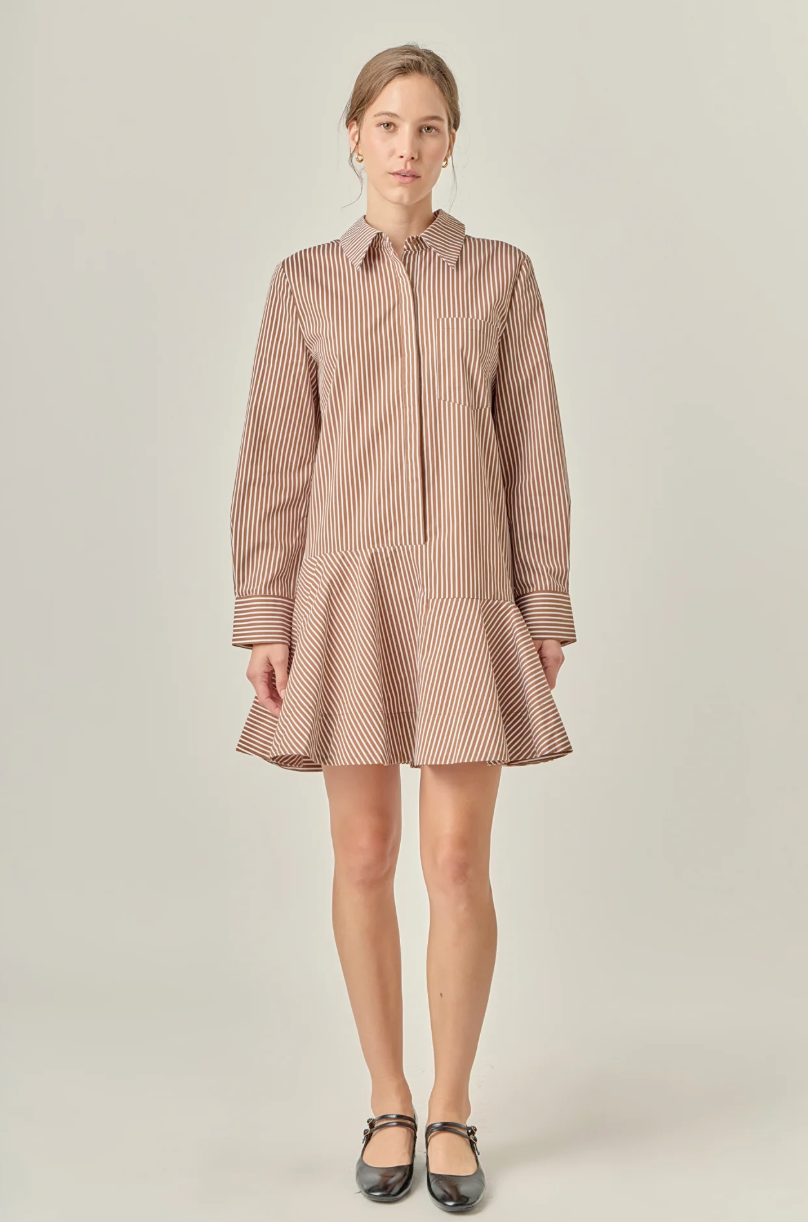 Stripe Collar Flared Skirt Dress