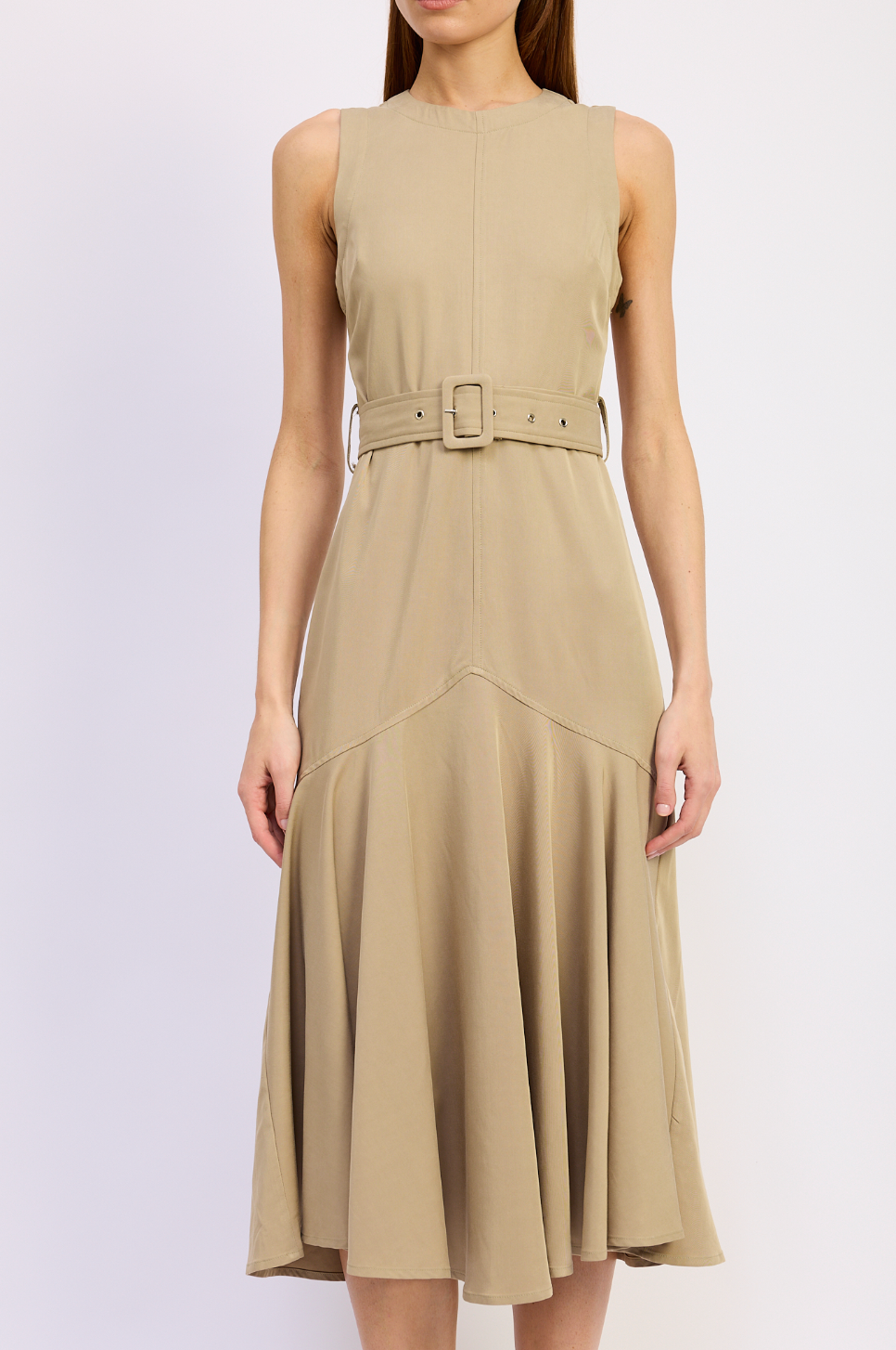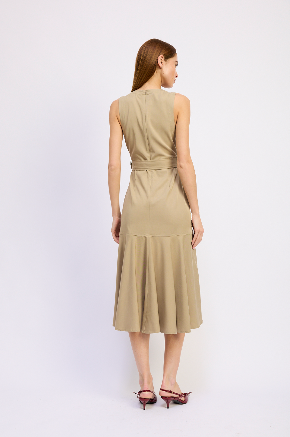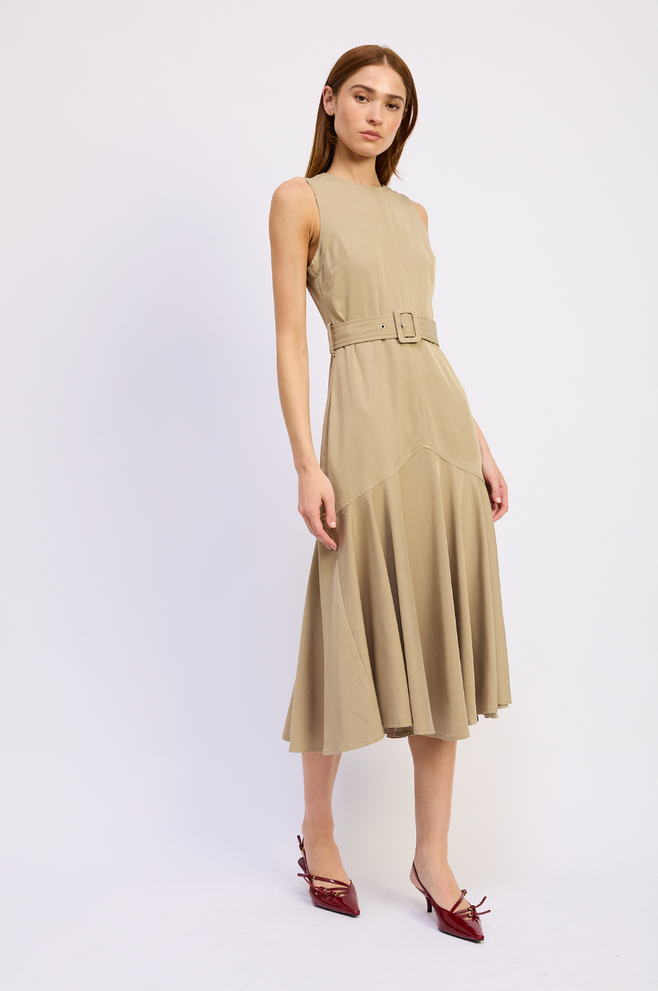 • Sleeveless Fit And Flare Fishtail Skirt Hem Belted Midi Dress