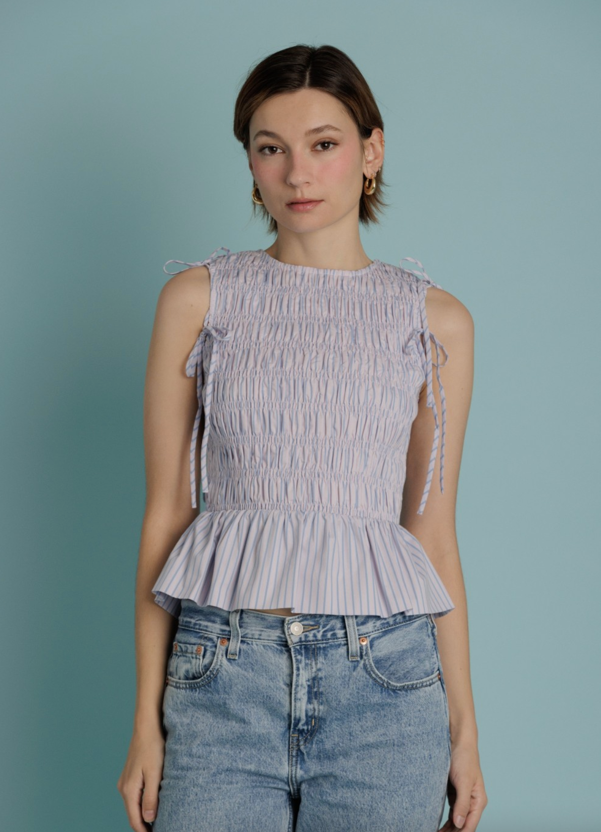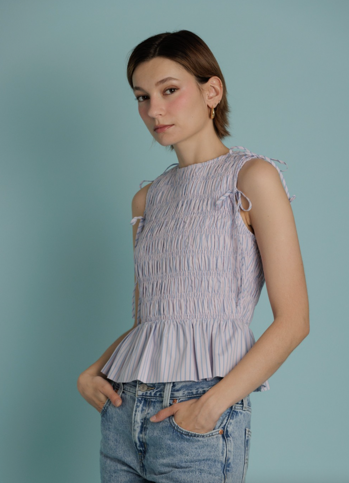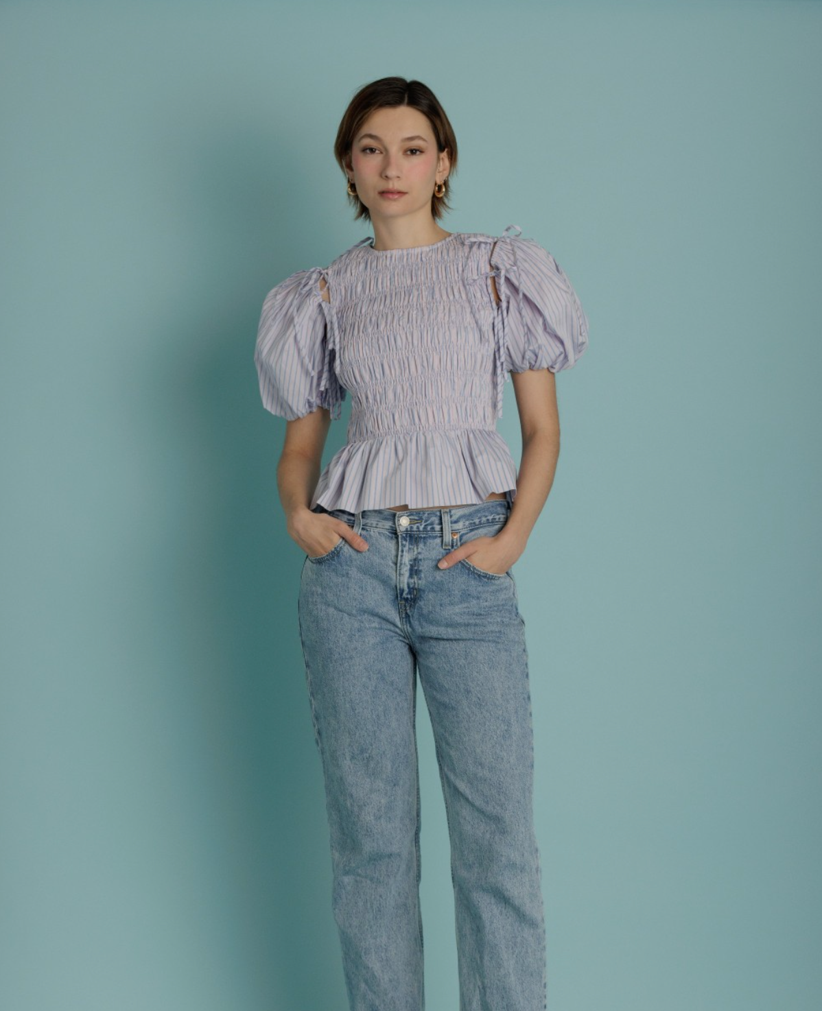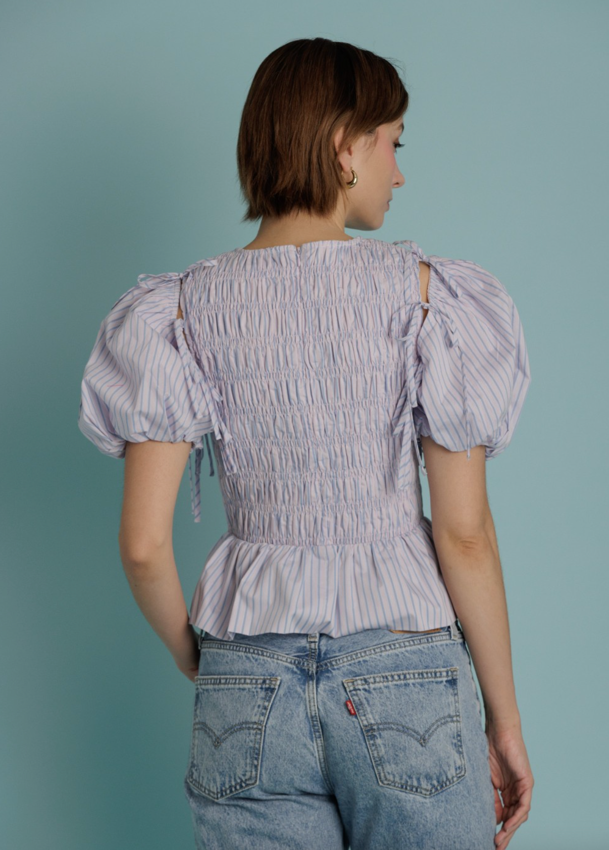 Detachable Puff Sleeve Top in Pink and Blue Stripe