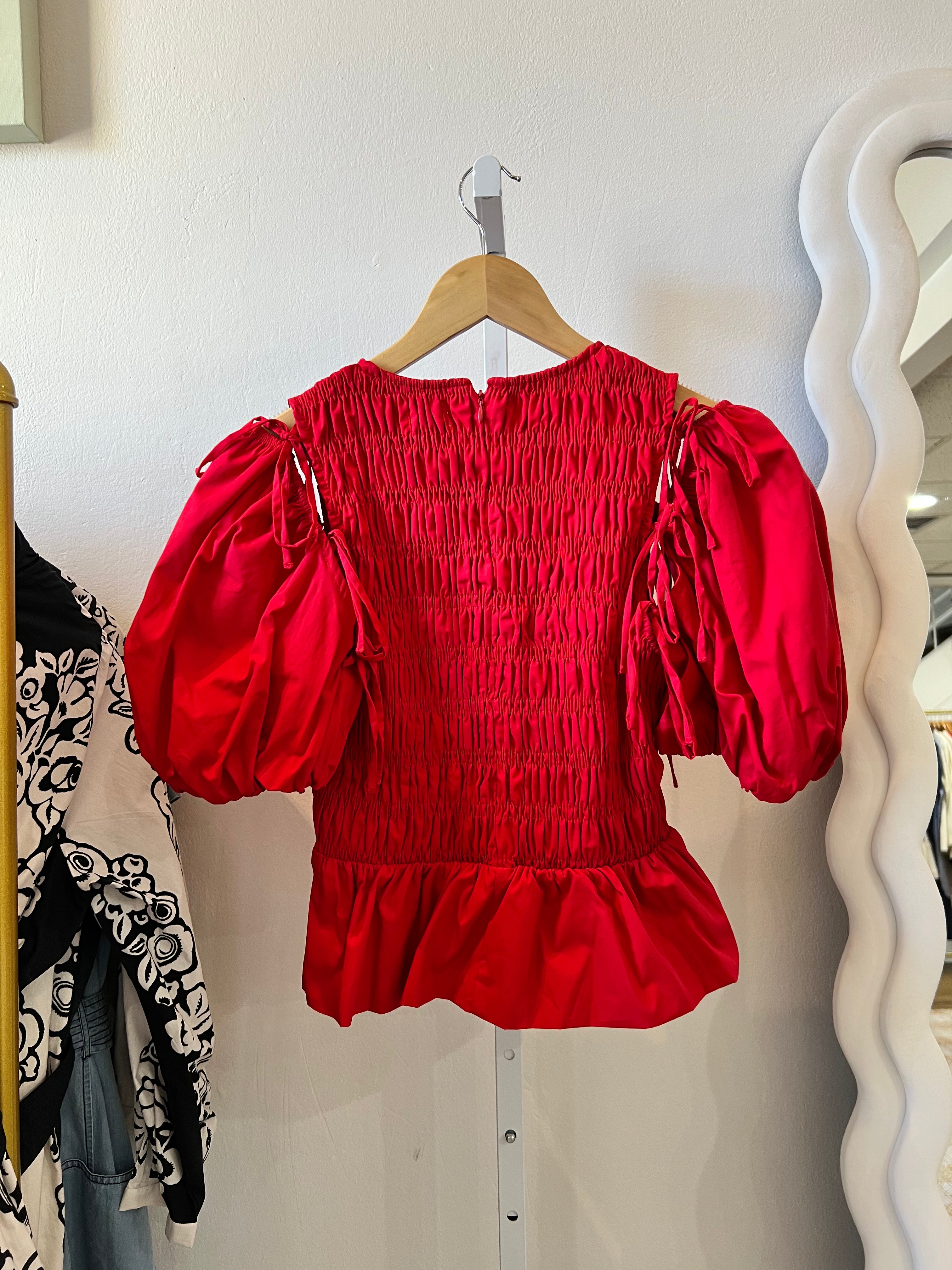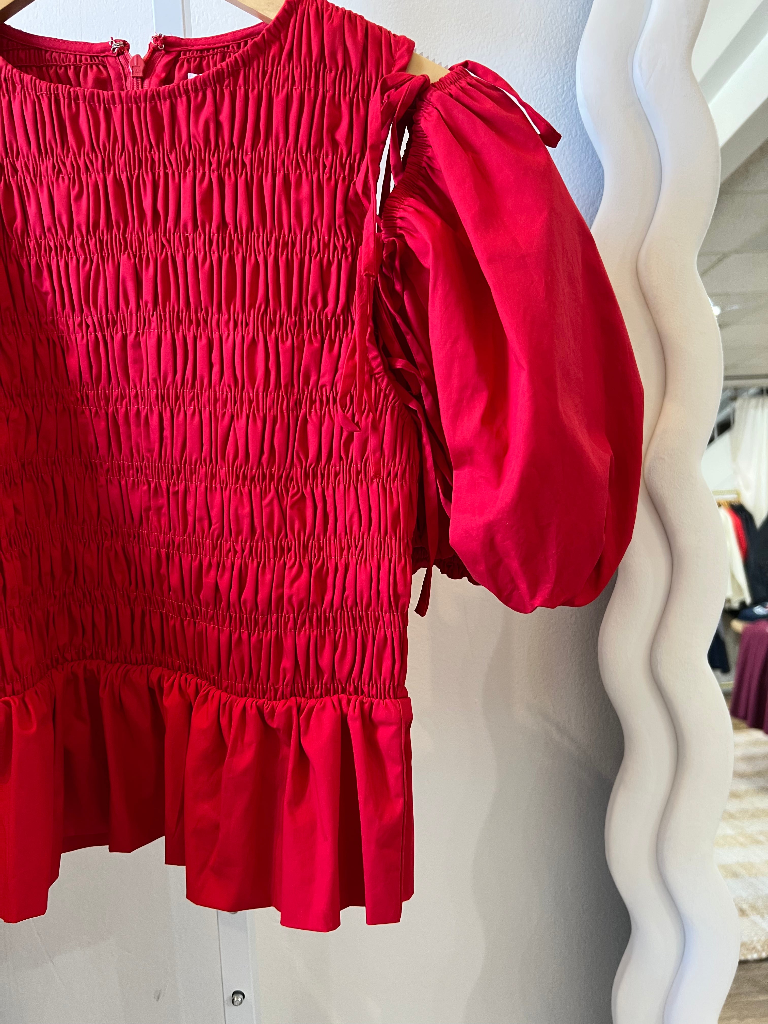 Detachable Sleeve Peplum Top in Red