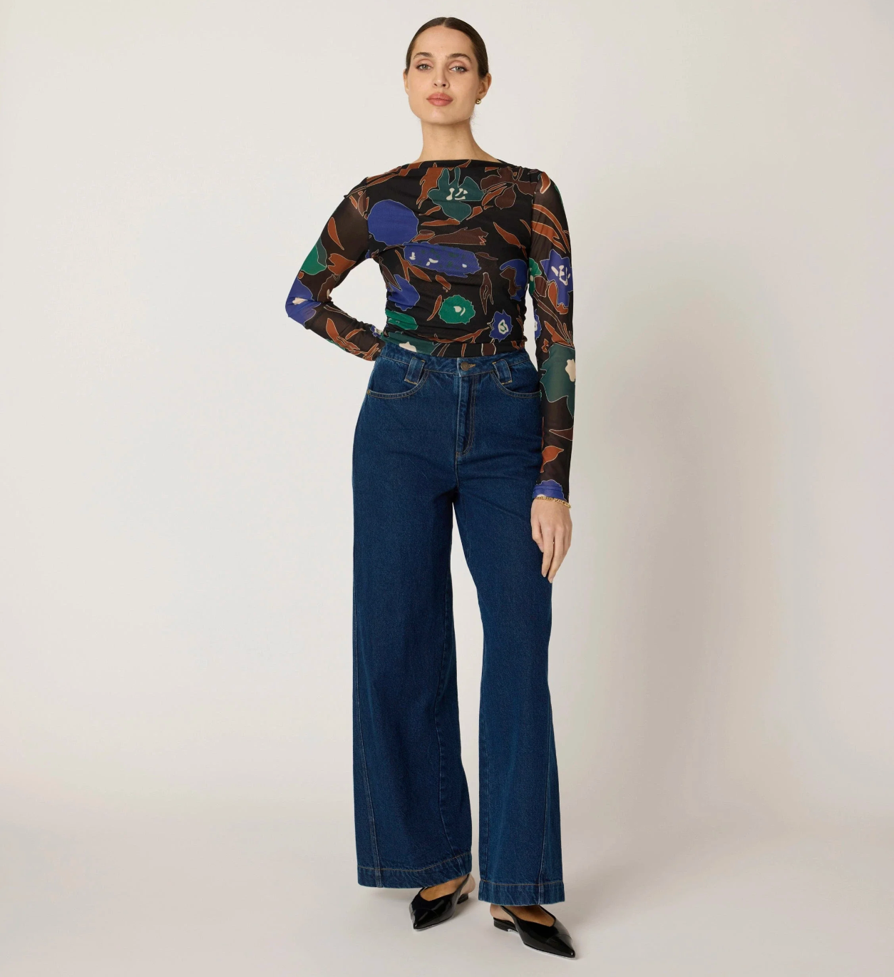 Ethically handmade in India from 88% nylon and 12% elastane, our best-selling Remy Top returns this fall in a dark floral Mariposa print. With its elegant high neckline and delicate shirring at the shoulders and waist, this flattering silhouette is a timeless piece designed to celebrate every body.