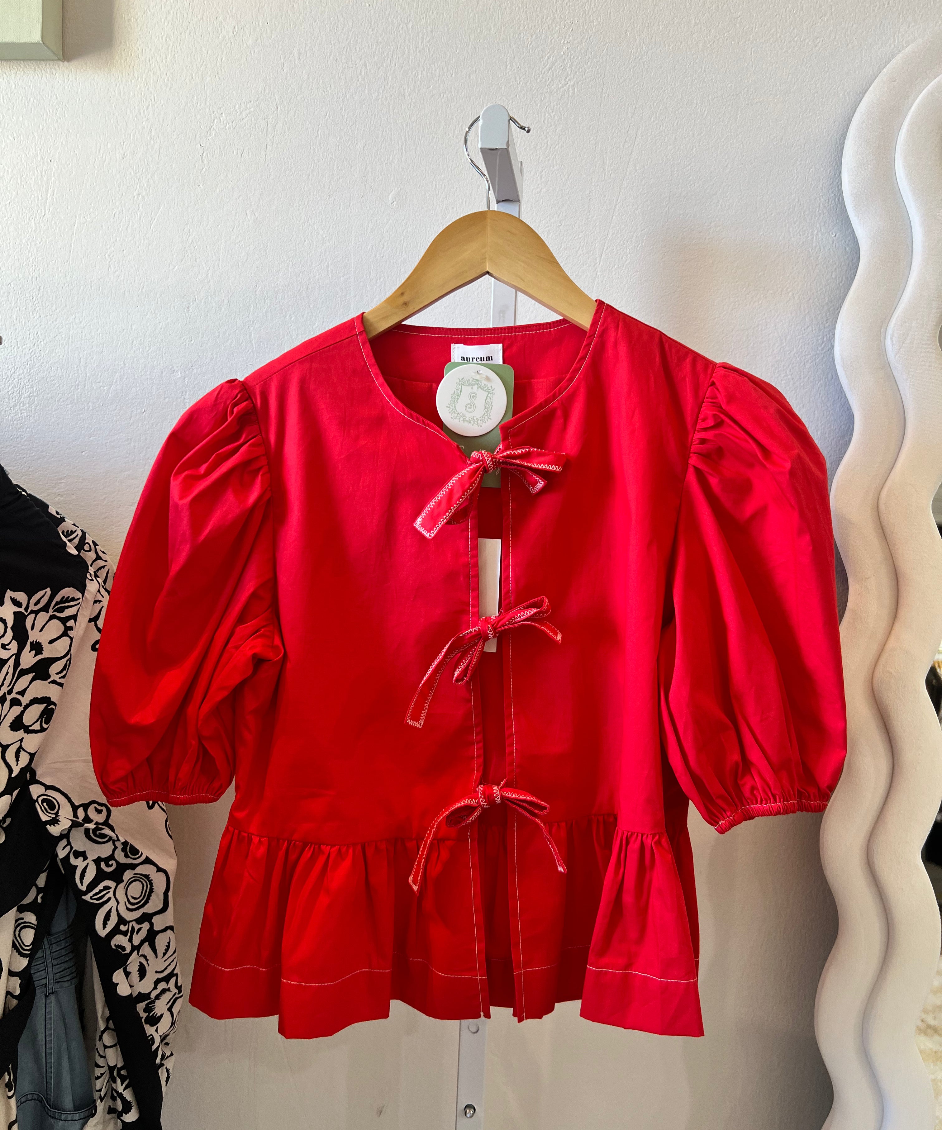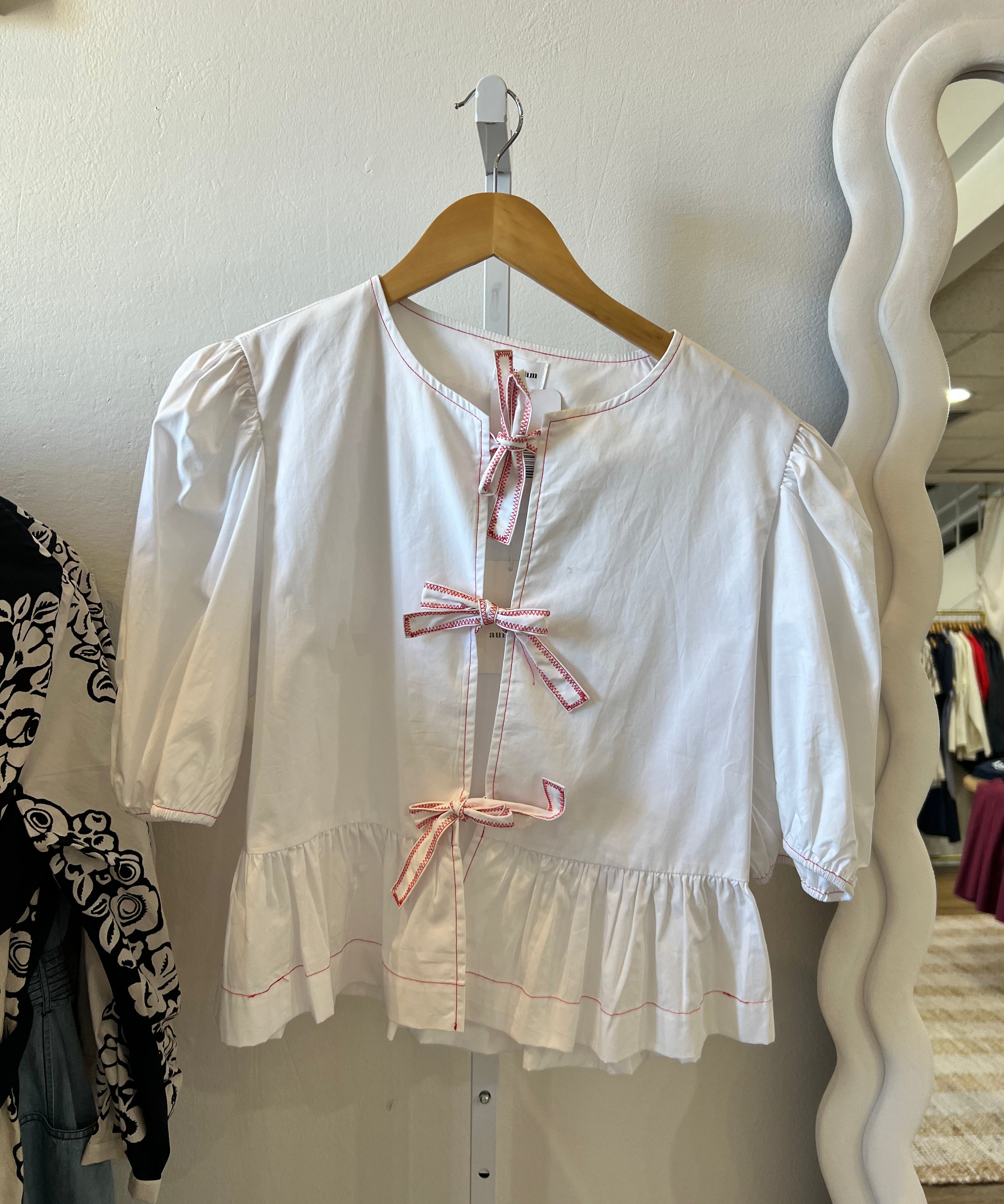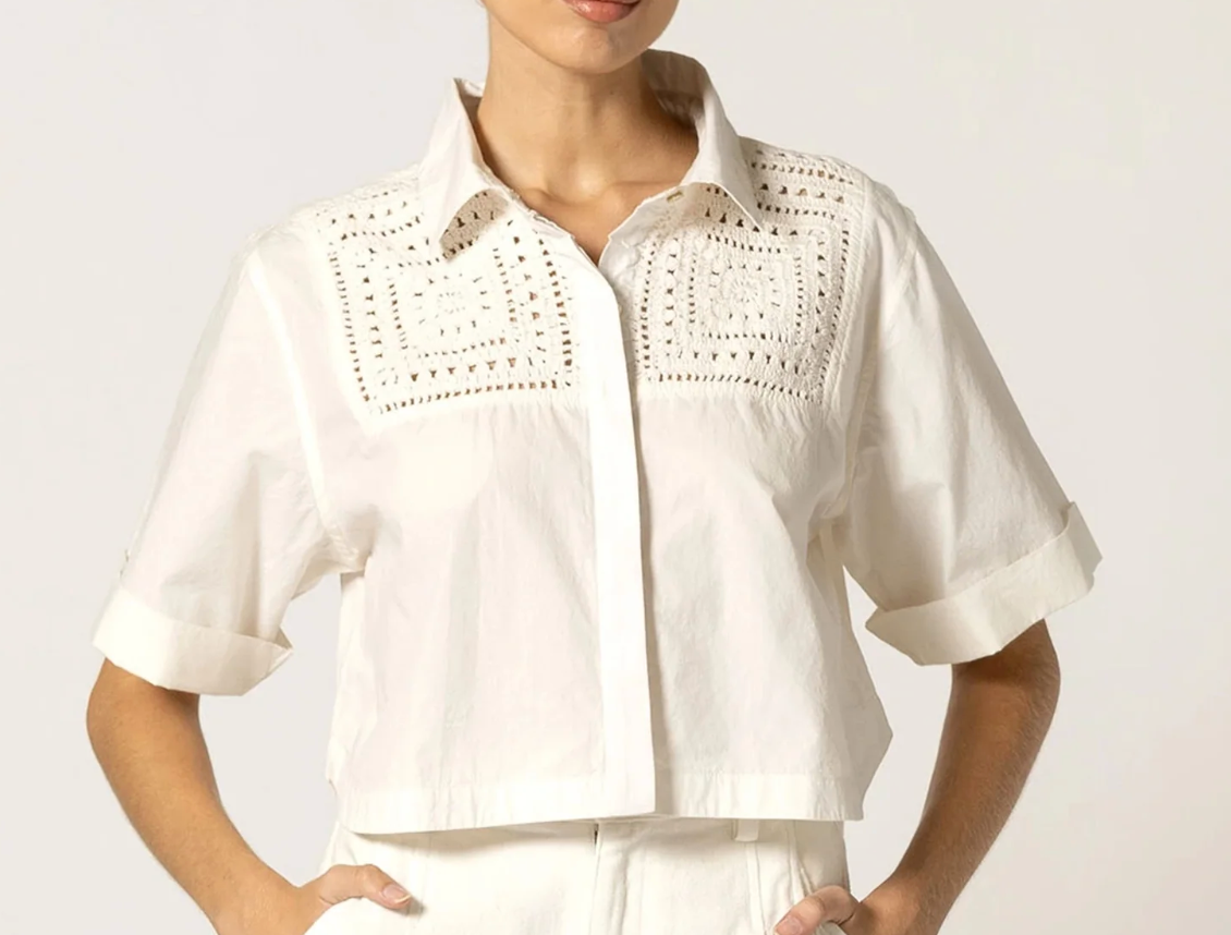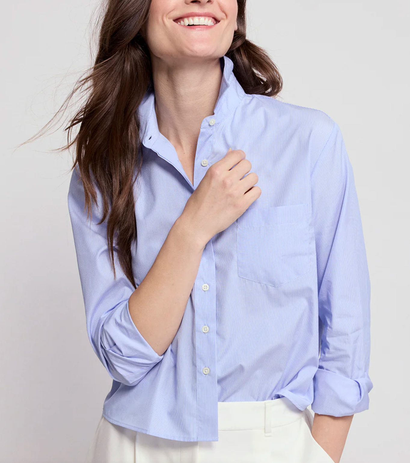 The Long Sleeve Boxy Crop in White/Blue Stripe
