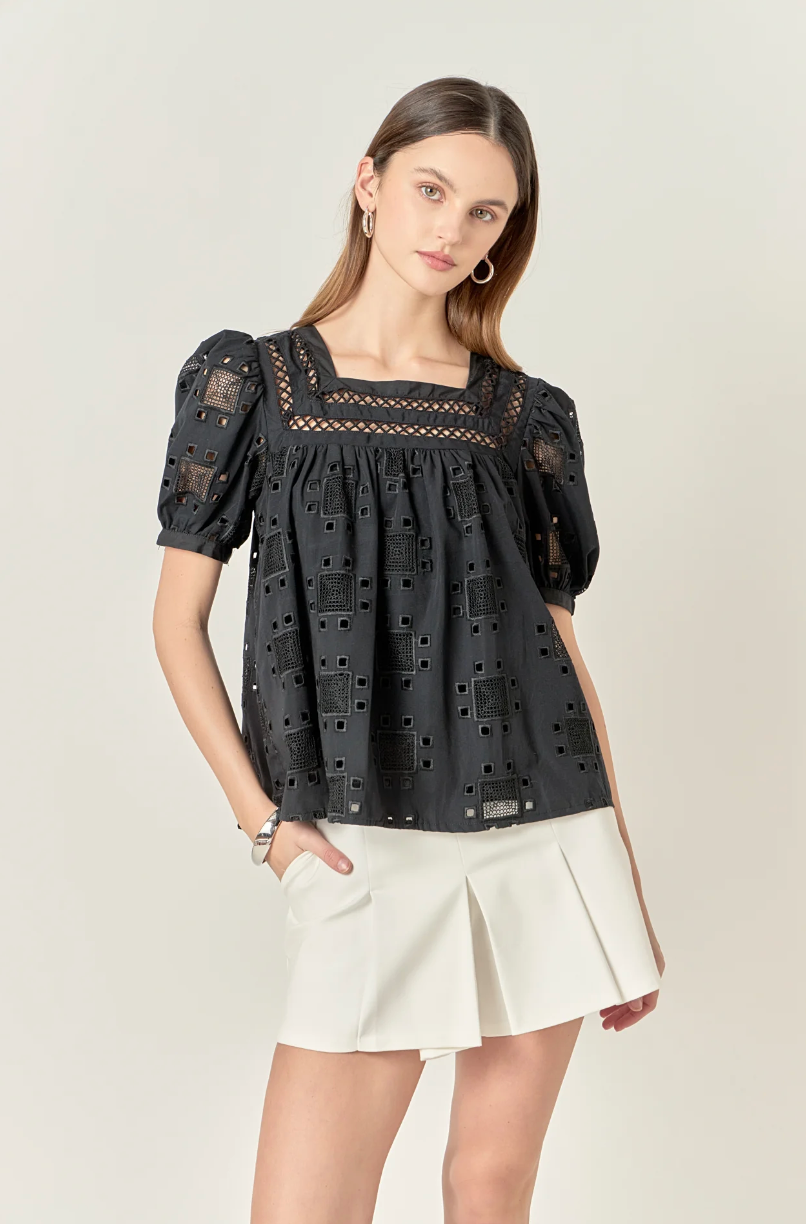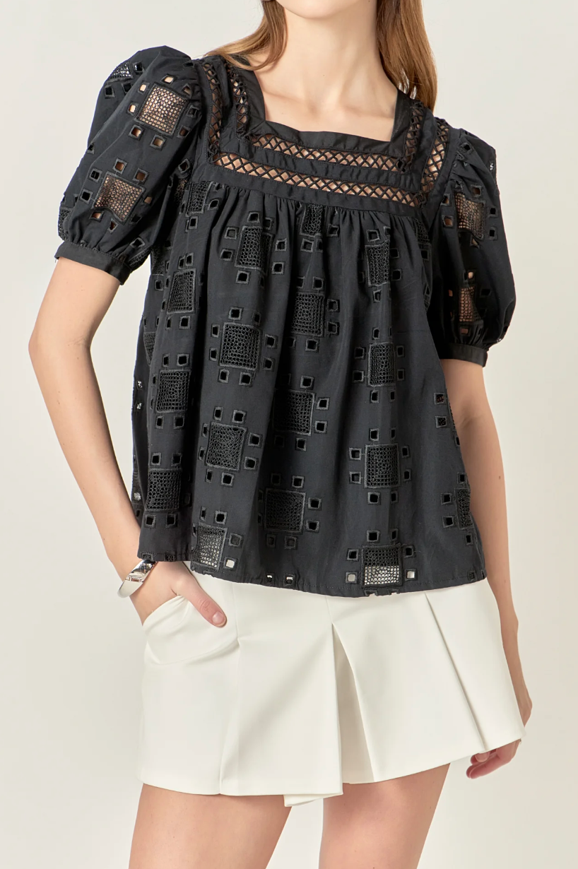 Square Neck Embroidered Top